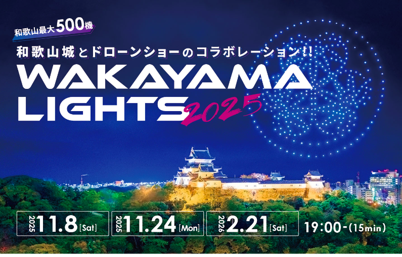 和歌山城ドローンショー「WAKAYAMA LIGHTS 2025」 11/24(月)、翌年2/21(土)